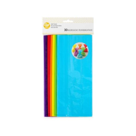 Envuelve tus golosinas dulces y saladas en estas coloridas bolsas y átalas con una cinta para darles un bonito toque final. Incluye 30 bolsas y lazos; 5 de cada color.