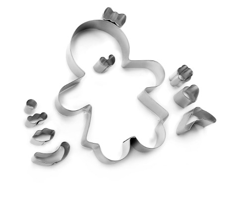 Precioso set de 10 cortadores de chica ginger con accesorios. Ideales para galletas, fondant, mazapán…