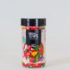 Ingredientes: Glucosa, azúcar blanco, maltodextrina, almidón de maíz, aroma comestible, colorantes (*E555, E172, *E129, *E133, E102, E150).